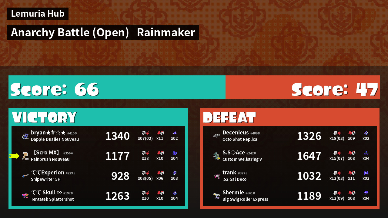 | Mode | Rainmaker - Anarchy Battle (Open) | ||
