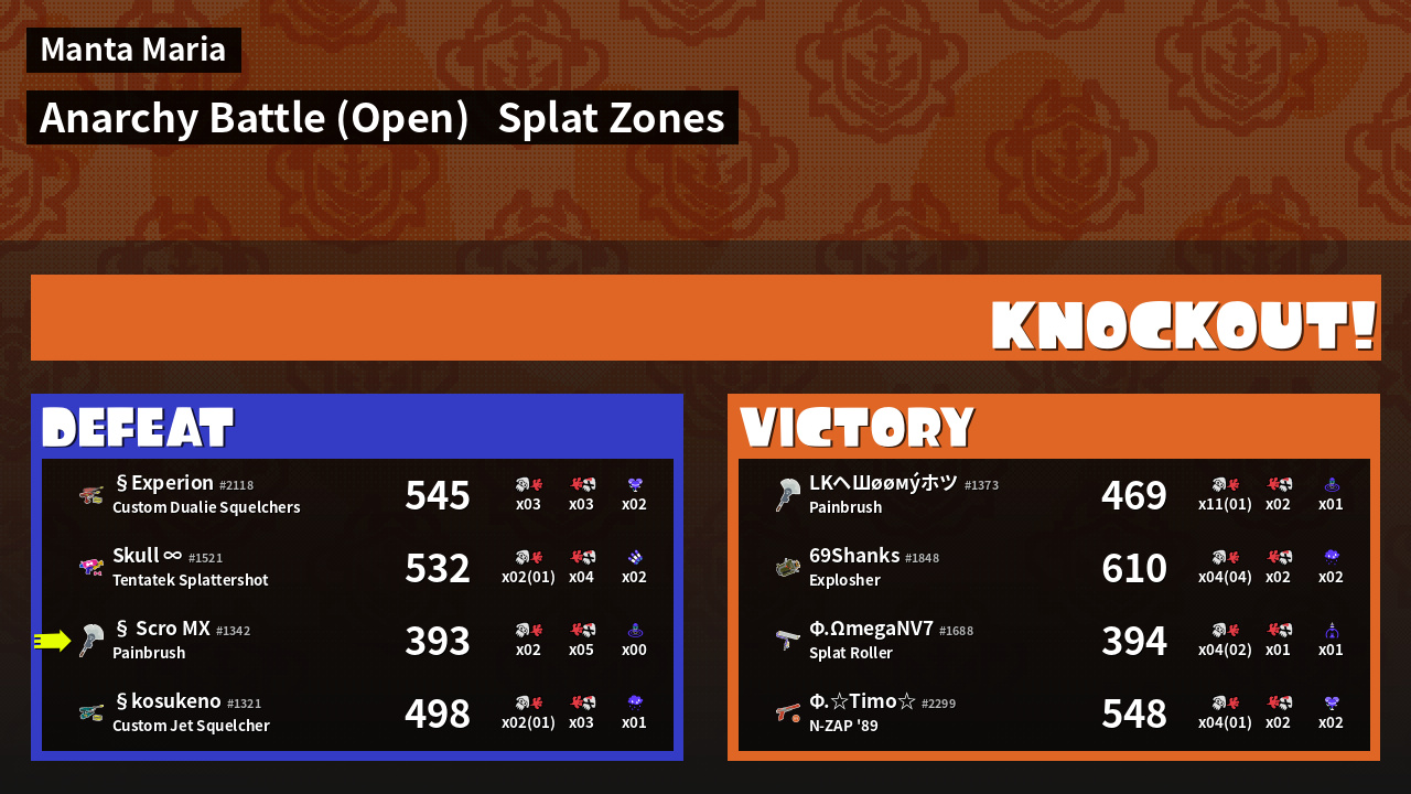 | Mode | Splat Zones - Anarchy Battle (Open) | ||
