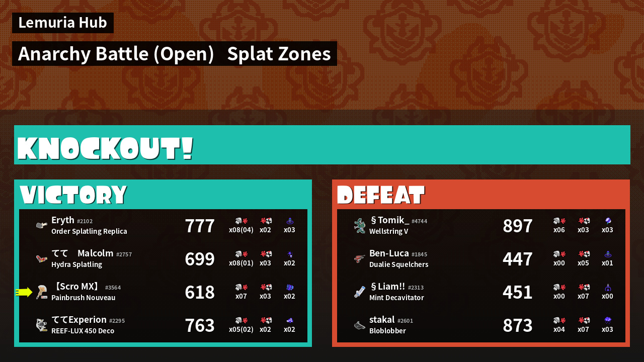 | Mode | Splat Zones - Anarchy Battle (Open) | ||
