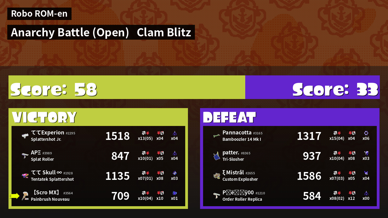 | Mode | Clam Blitz - Anarchy Battle (Open) | ||