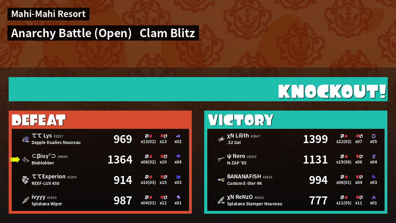 | Mode | Clam Blitz - Anarchy Battle (Open) | ||