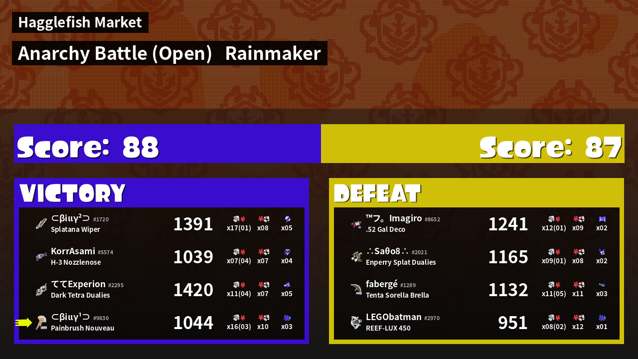 | Mode | Rainmaker - Anarchy Battle (Open) | ||