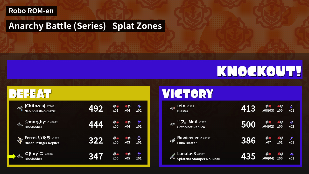 | Mode | Splat Zones - Anarchy Battle (Series) | ||