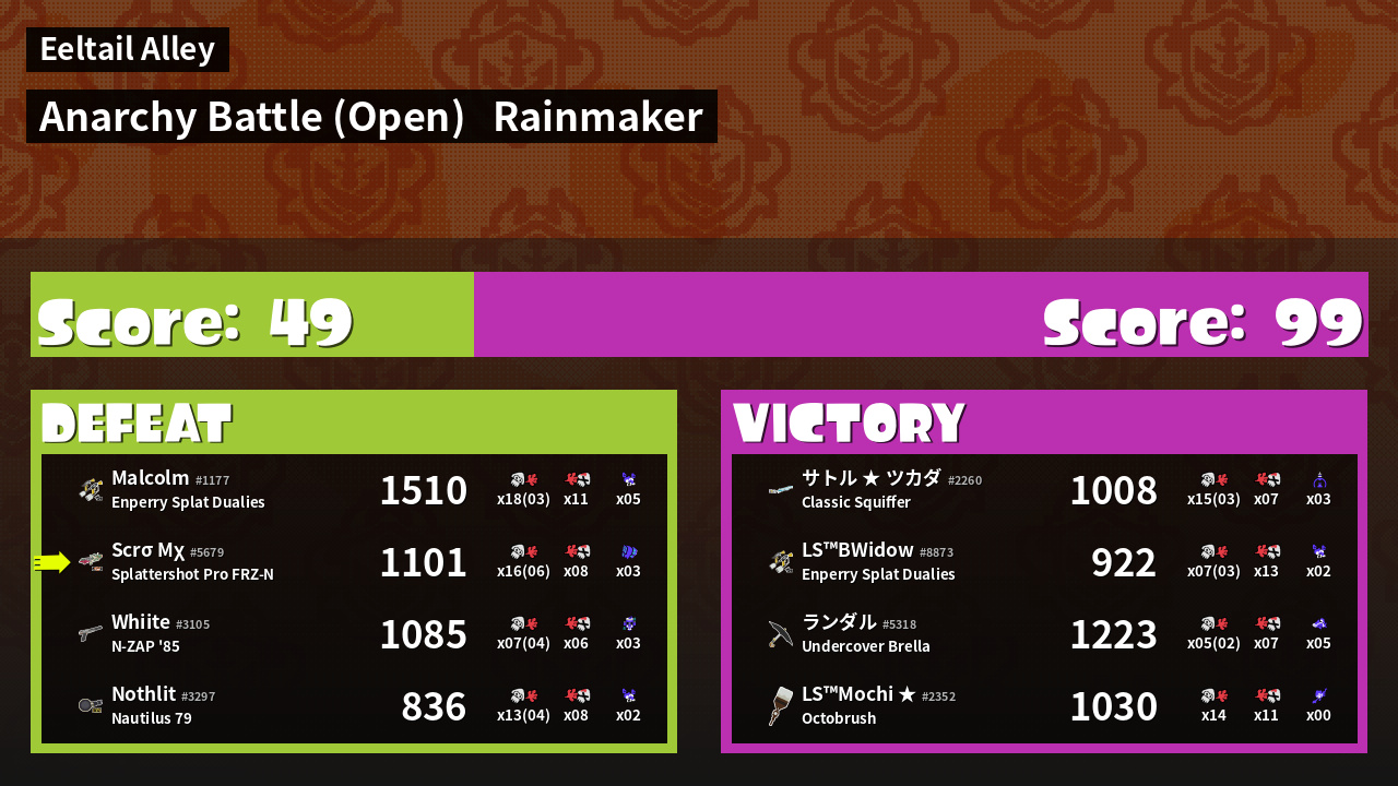 | Mode | Rainmaker - Anarchy Battle (Open) |