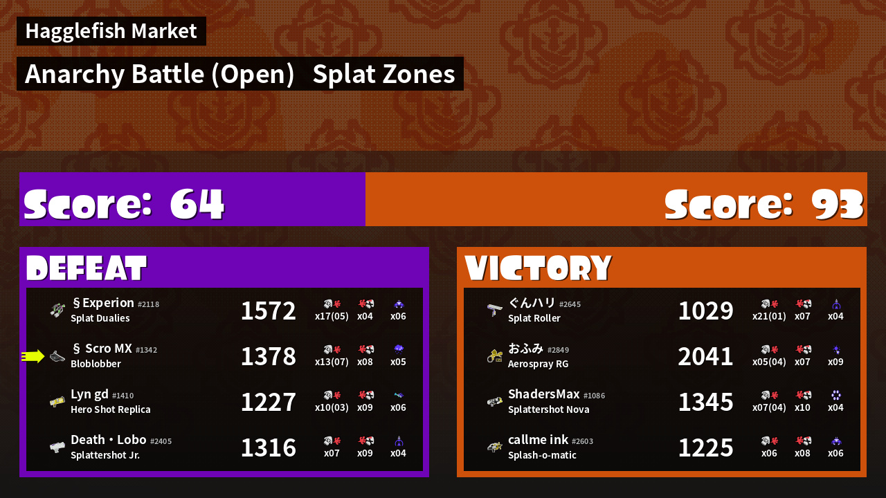 | Mode | Splat Zones - Anarchy Battle (Open) | ||