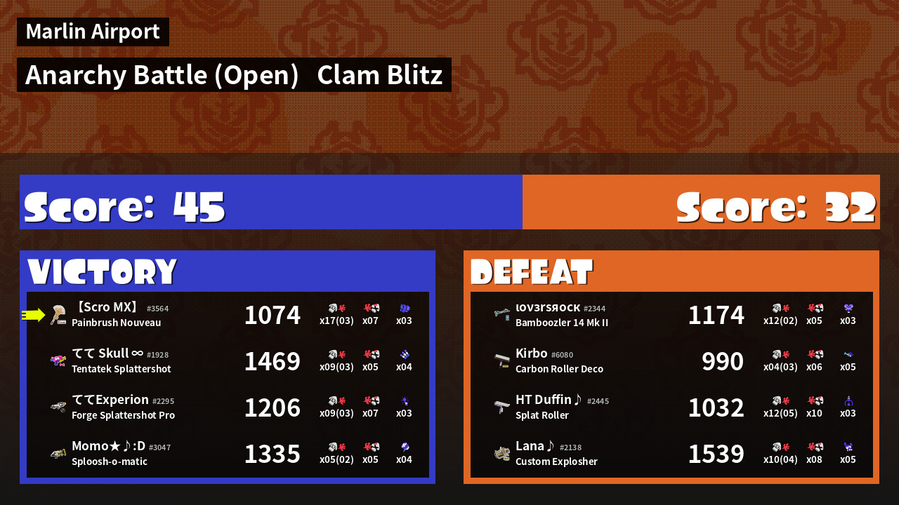 | Mode | Clam Blitz - Anarchy Battle (Open) | ||