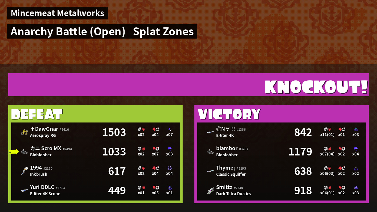 | Mode | Splat Zones - Anarchy Battle (Open) | ||