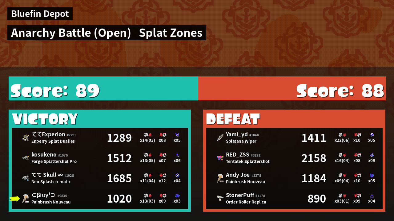 | Mode | Splat Zones - Anarchy Battle (Open) | ||