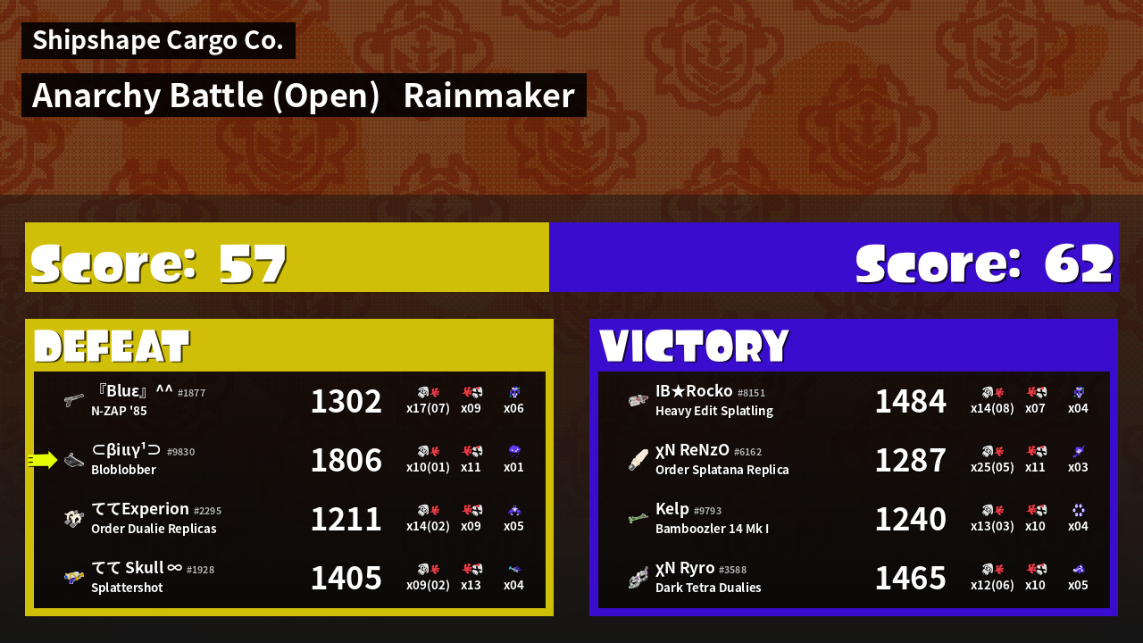 | Mode | Rainmaker - Anarchy Battle (Open) | ||