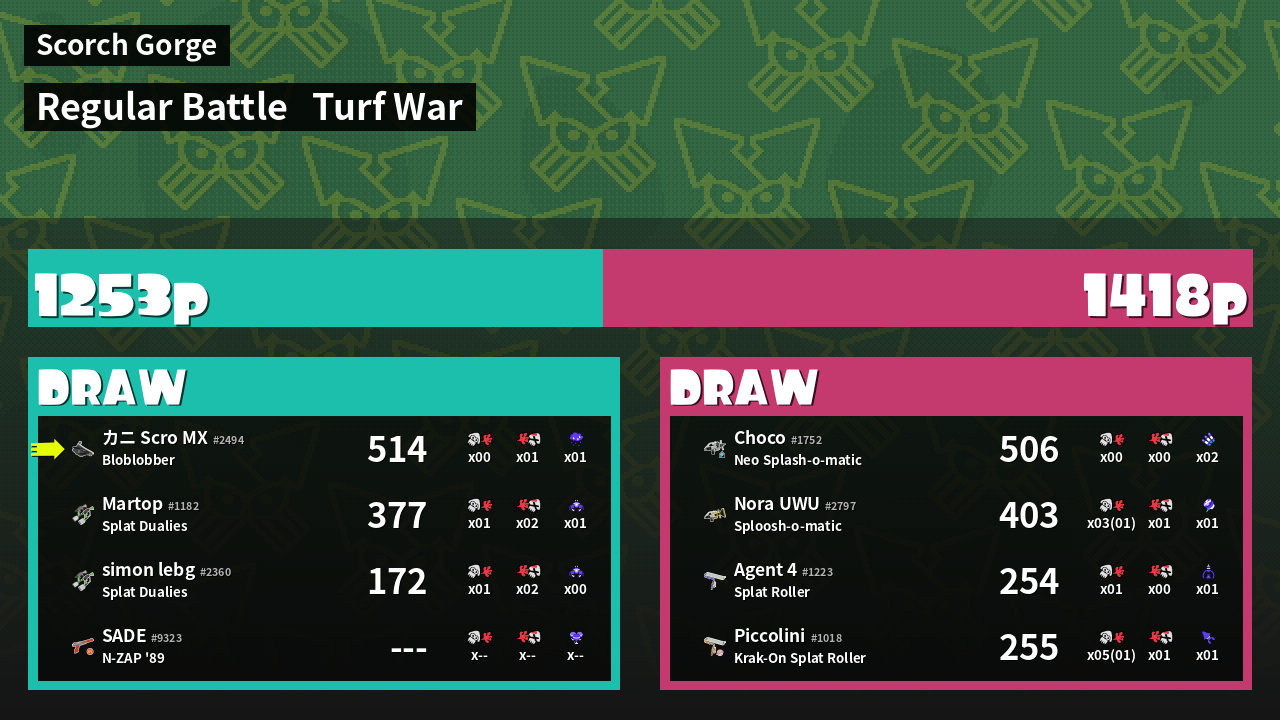 | Mode | Turf War - Regular Battle | ||
