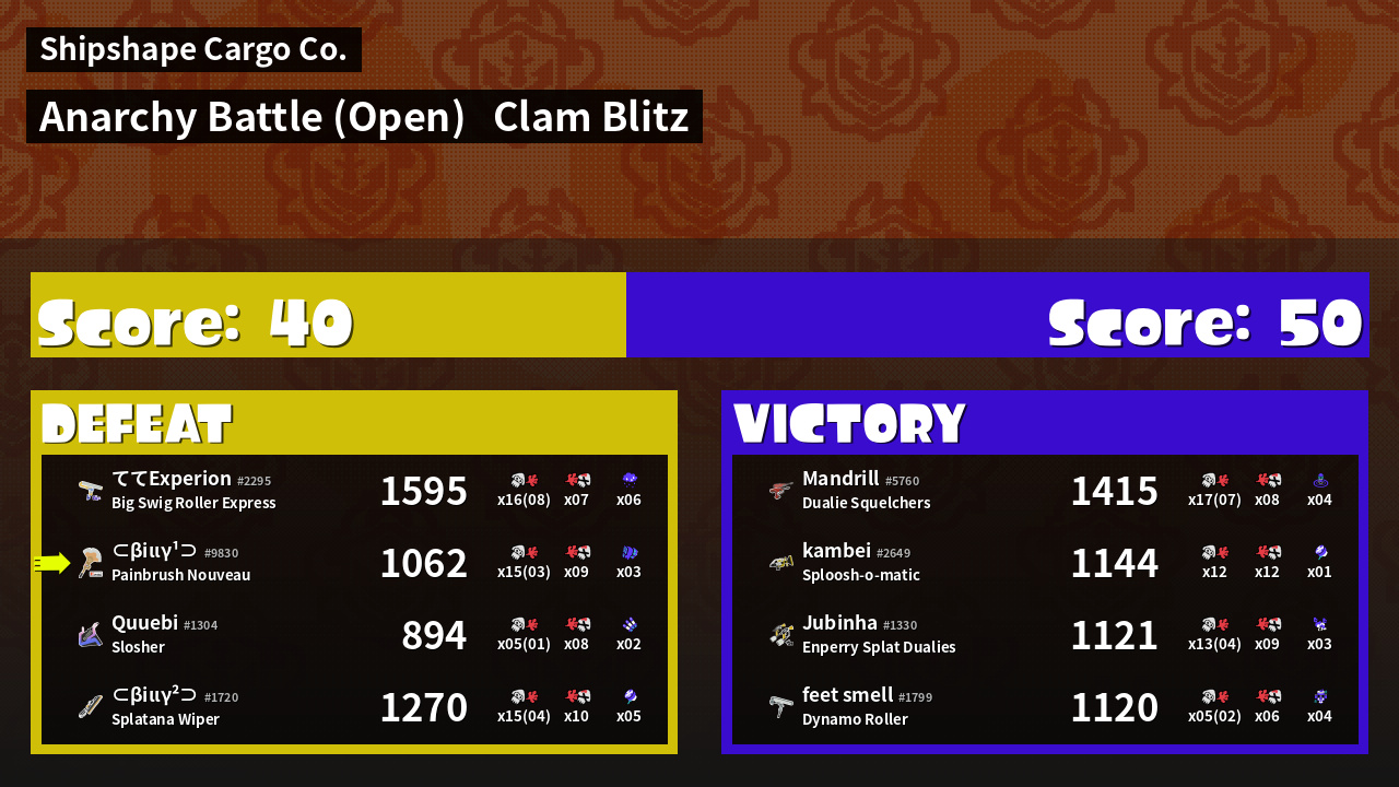 | Mode | Clam Blitz - Anarchy Battle (Open) | ||