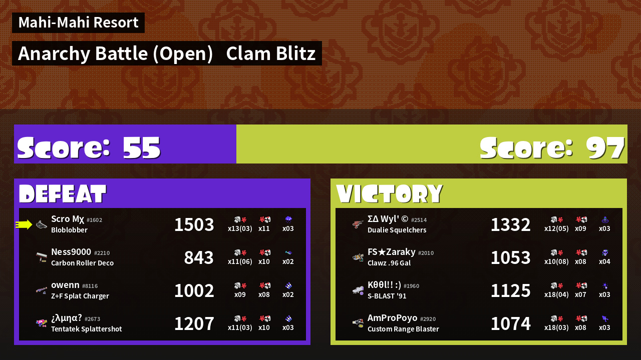 | Mode | Clam Blitz - Anarchy Battle (Open) |