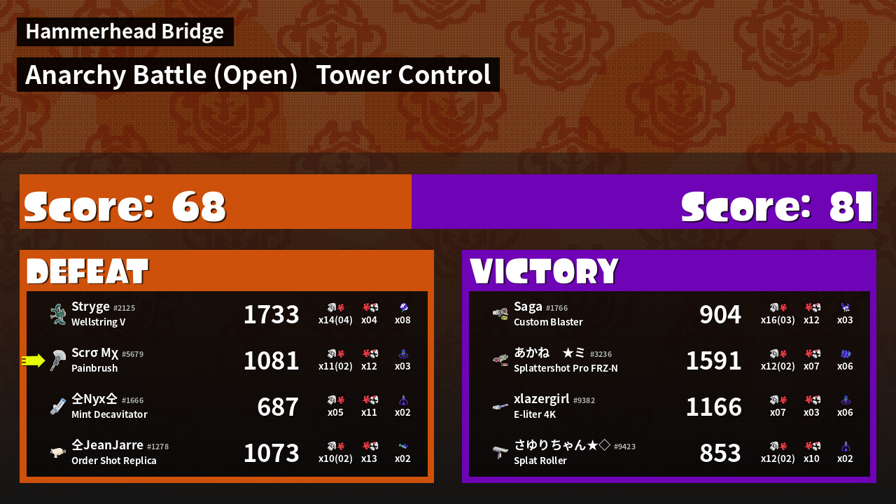 | Mode | Tower Control - Anarchy Battle (Open) | ||