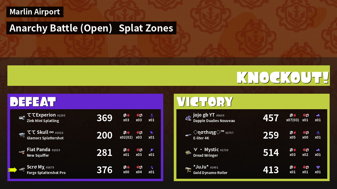 | Mode | Splat Zones - Anarchy Battle (Open) |