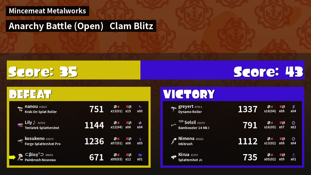 | Mode | Clam Blitz - Anarchy Battle (Open) | ||