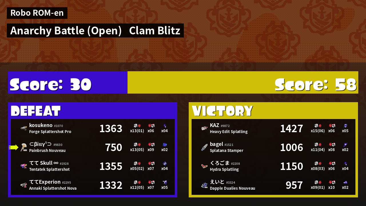 | Mode | Clam Blitz - Anarchy Battle (Open) | ||