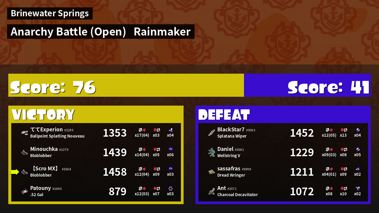 | Medals | #1 Turf Inker #1 Splat Assister #1 Rainmaker Stopper | ||