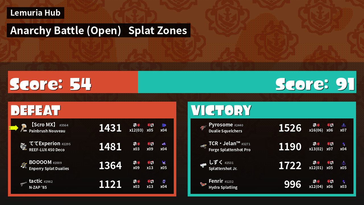 | Mode | Splat Zones - Anarchy Battle (Open) | ||