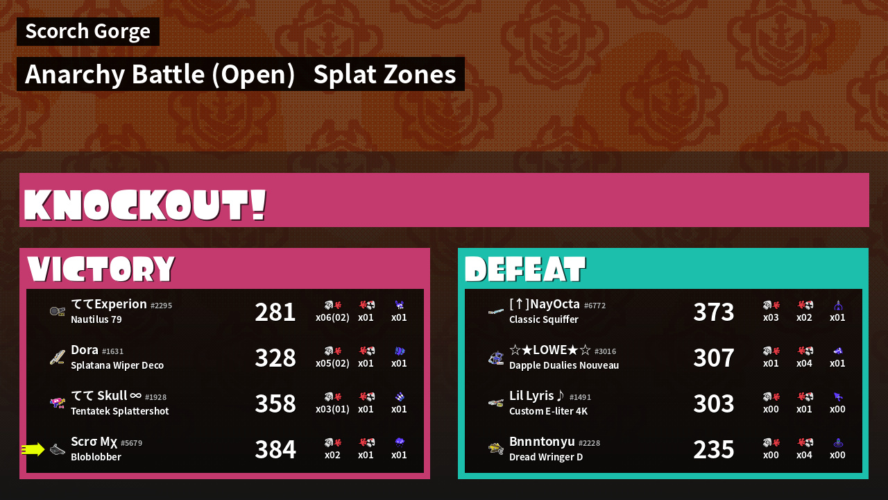 | Mode | Splat Zones - Anarchy Battle (Open) |