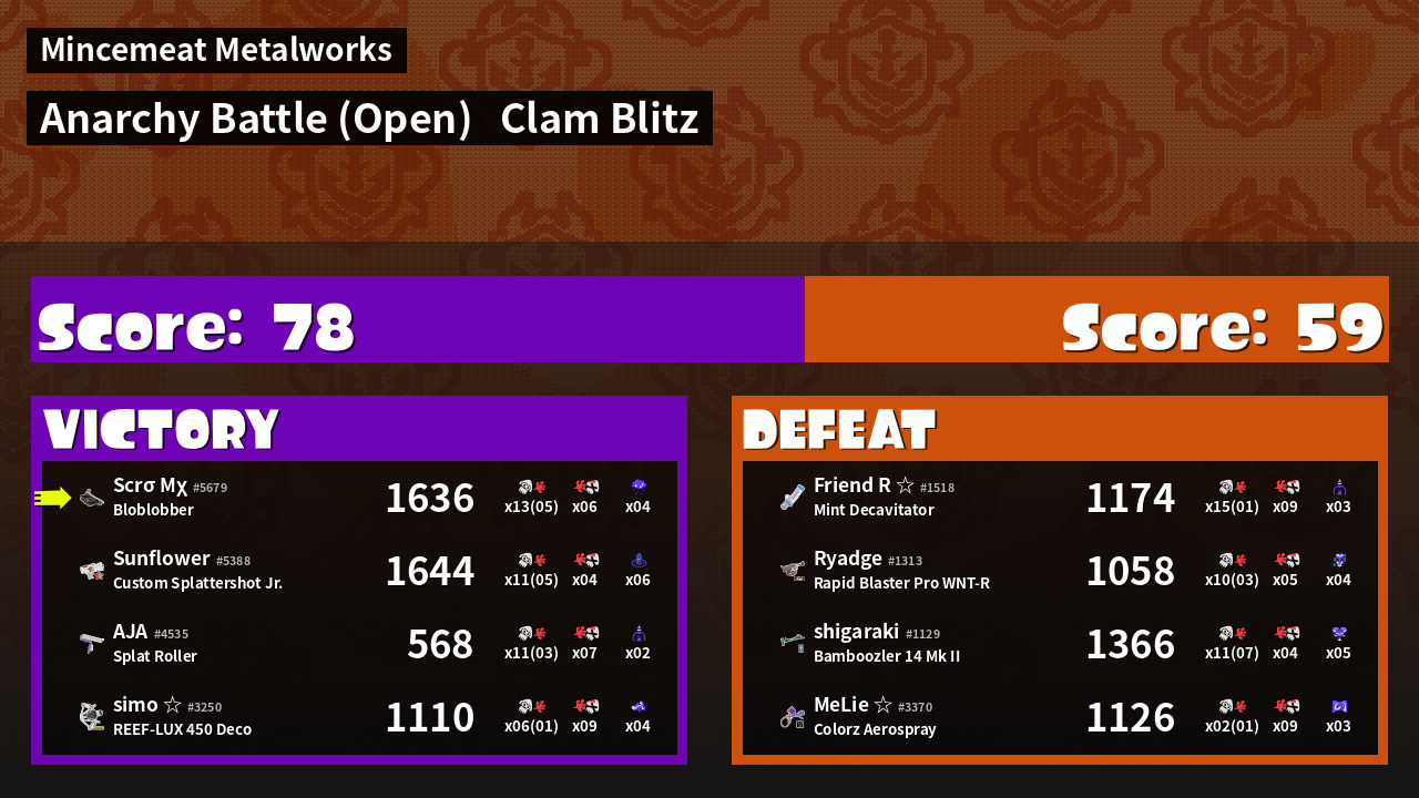 | Mode | Clam Blitz - Anarchy Battle (Open) |