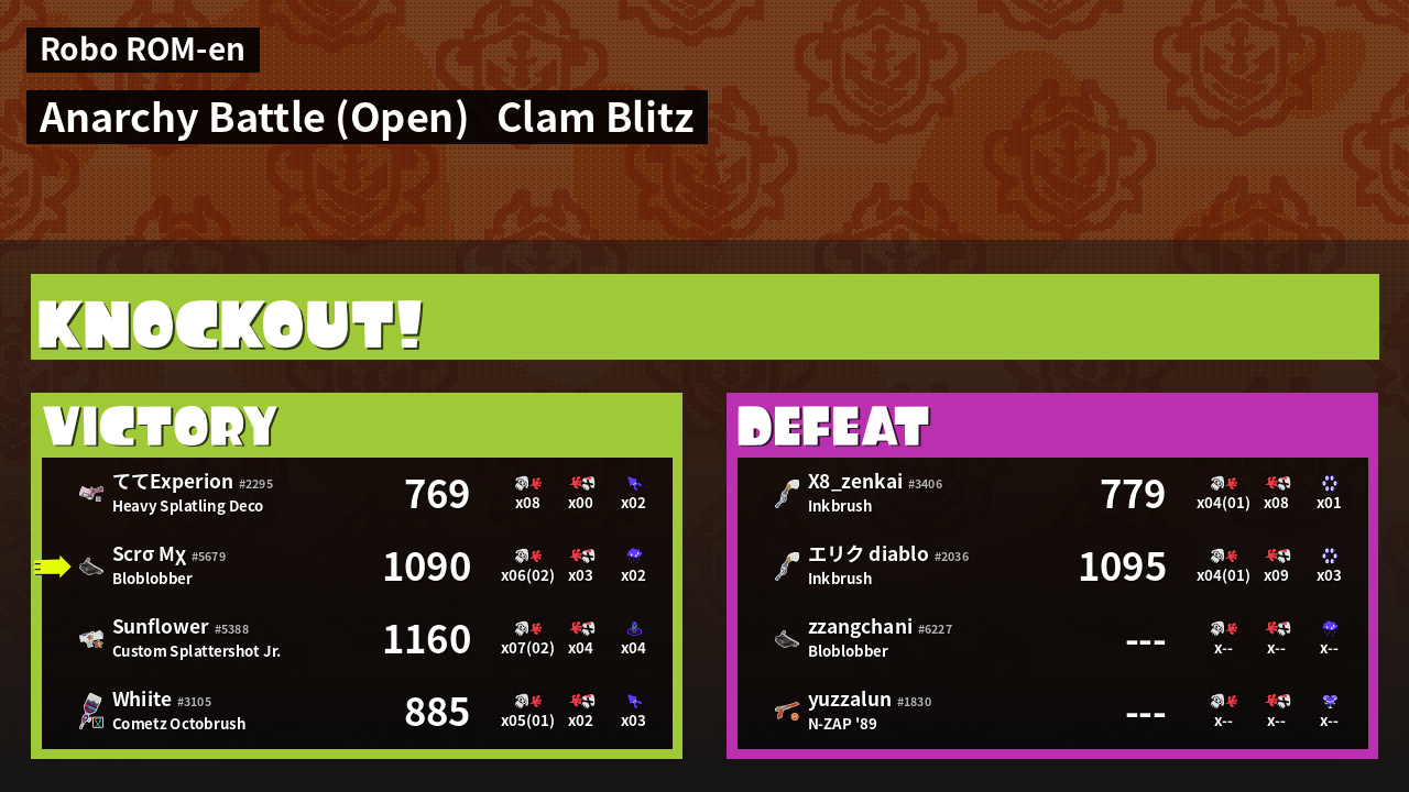 | Mode | Clam Blitz - Anarchy Battle (Open) |
