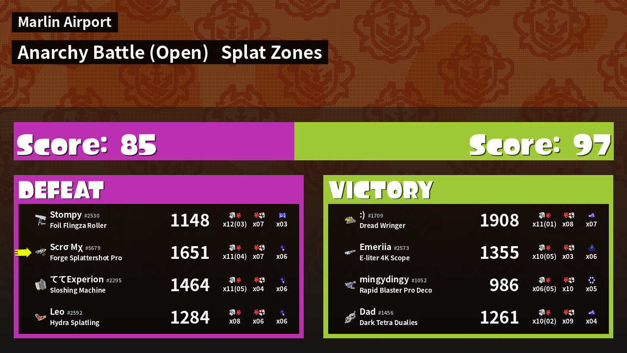 | Mode | Splat Zones - Anarchy Battle (Open) |