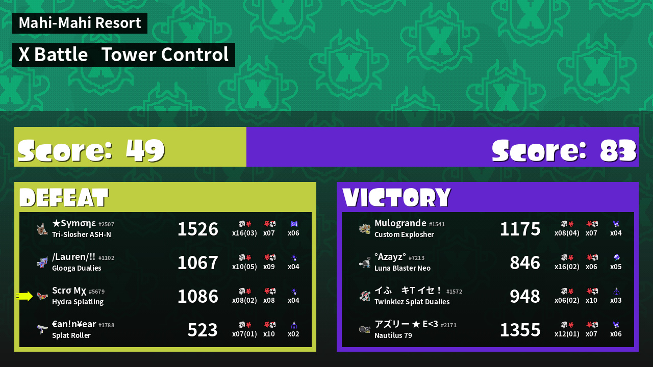 | Mode | Tower Control - X Battle |