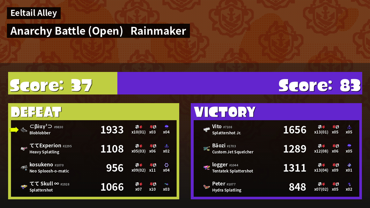| Mode | Rainmaker - Anarchy Battle (Open) | ||