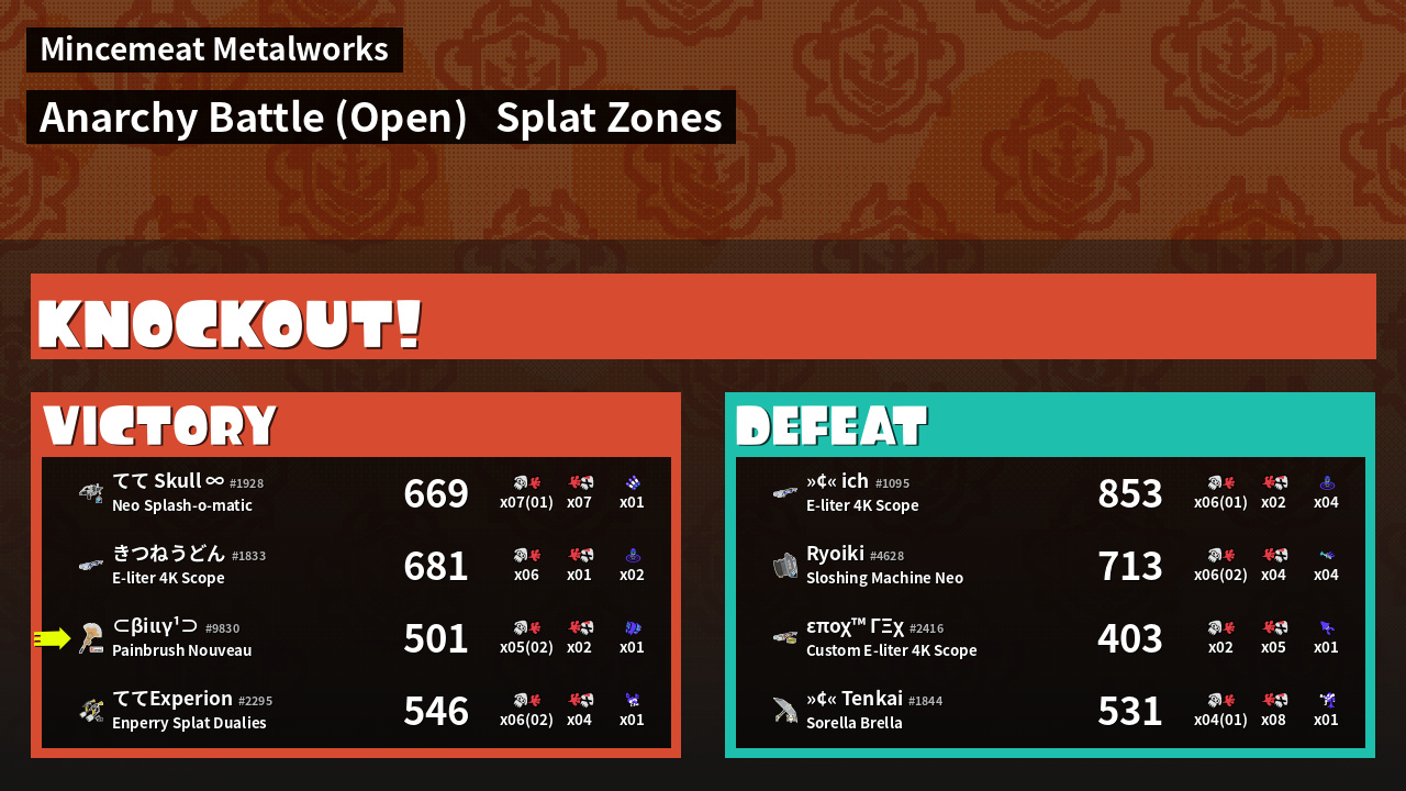 | Medals | #1 Popular Target #1 Splat Assister #1 Splat Zone Hero | ||
