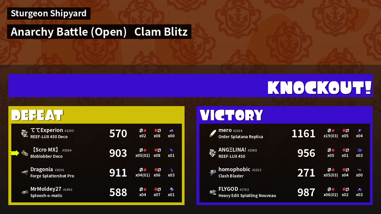 | Mode | Clam Blitz - Anarchy Battle (Open) | ||