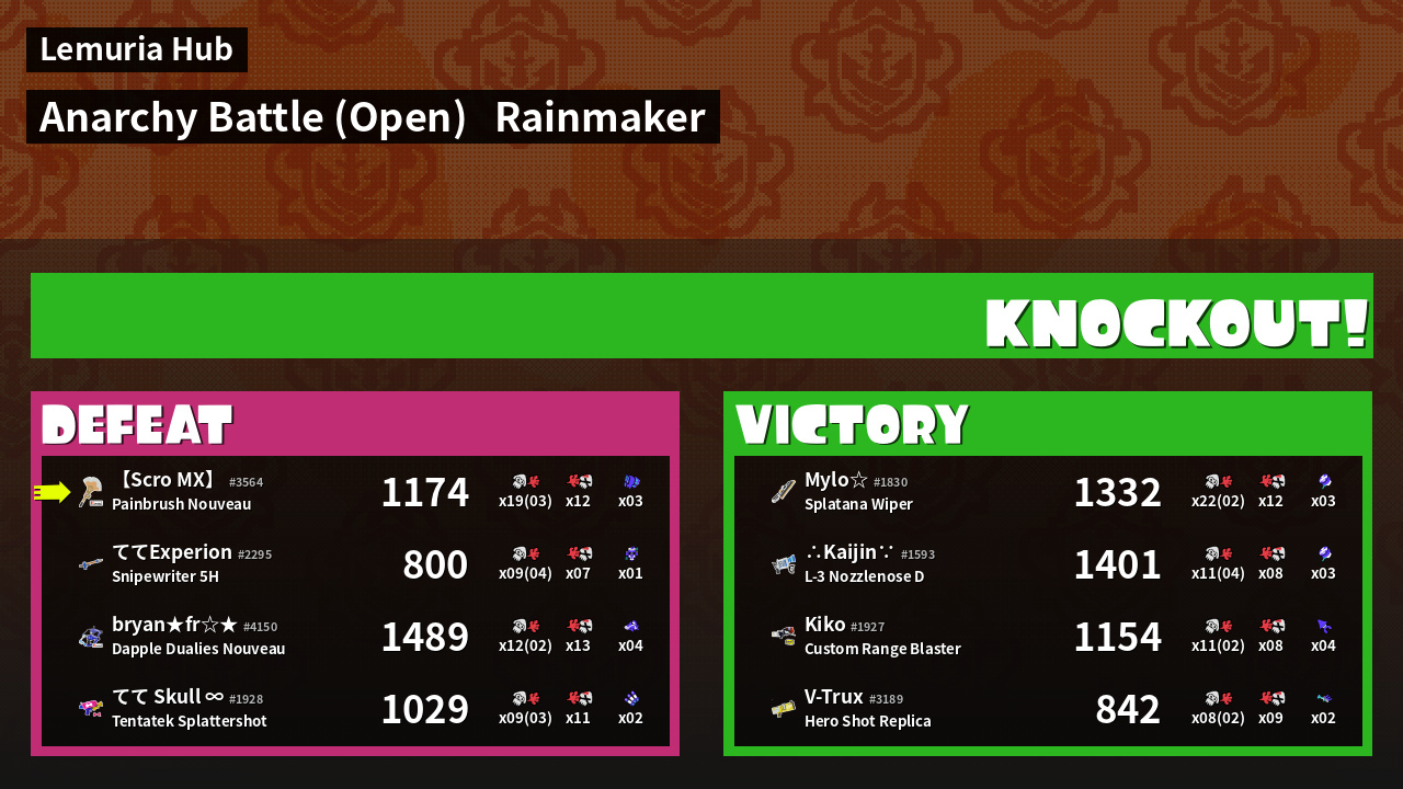 | Mode | Rainmaker - Anarchy Battle (Open) | ||