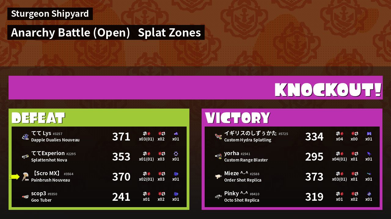 | Mode | Splat Zones - Anarchy Battle (Open) | ||