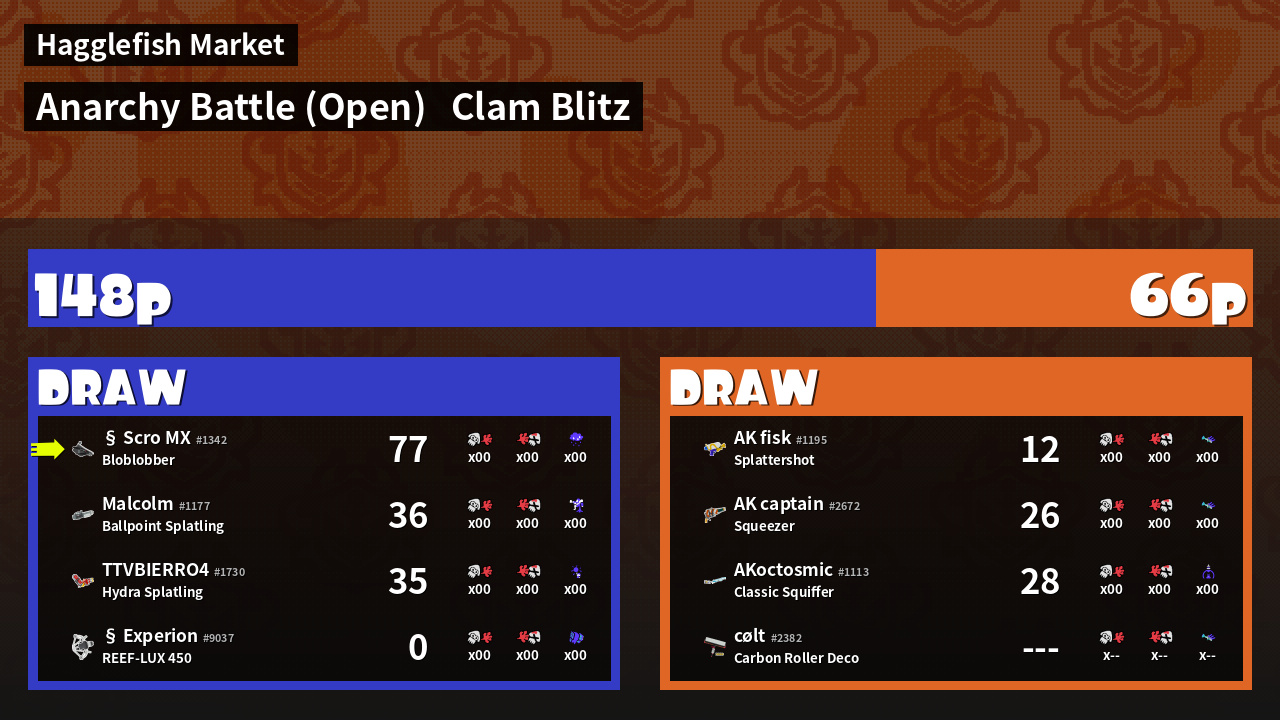 | Mode | Clam Blitz - Anarchy Battle (Open) | ||