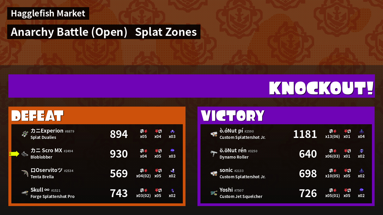 | Mode | Splat Zones - Anarchy Battle (Open) | ||