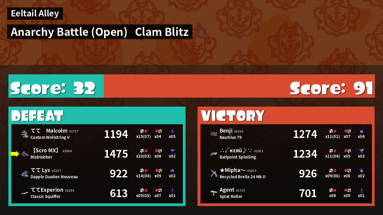 | Mode | Clam Blitz - Anarchy Battle (Open) | ||