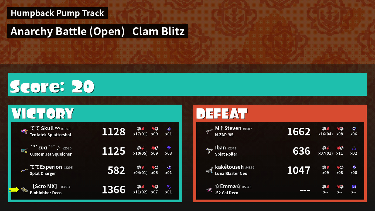| Mode | Clam Blitz - Anarchy Battle (Open) | ||