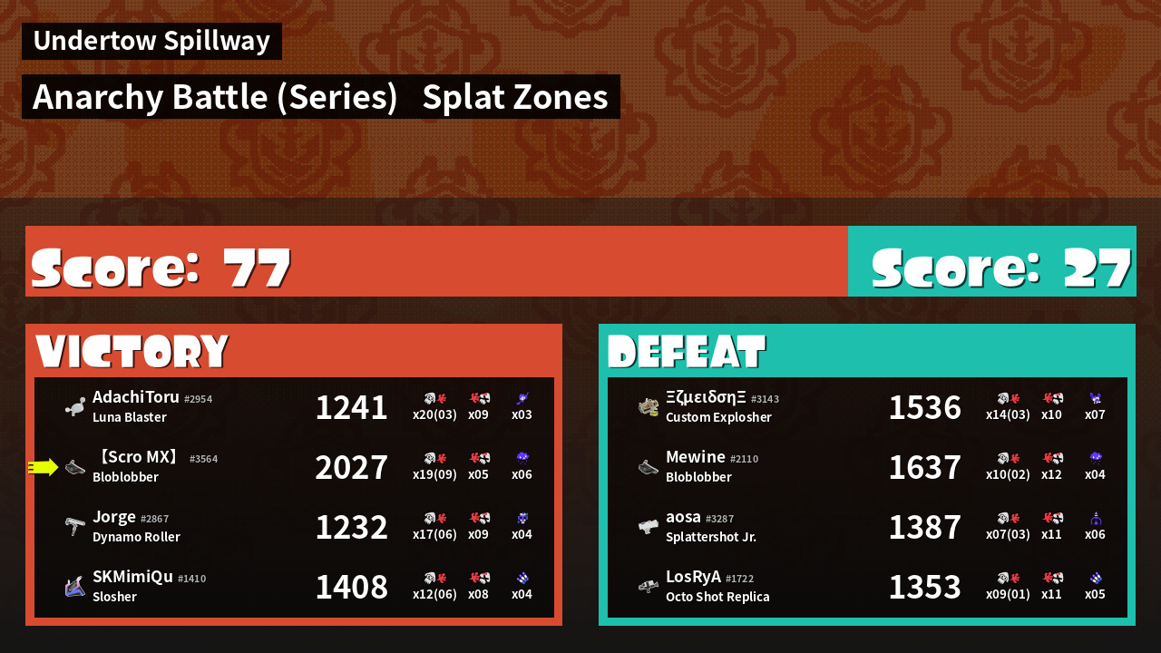| Mode | Splat Zones - Anarchy Battle (Series) | ||