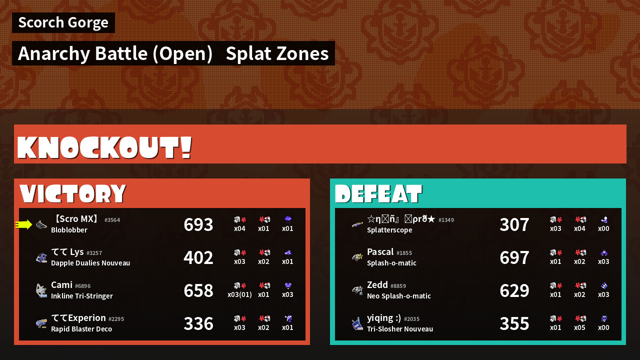 | Mode | Splat Zones - Anarchy Battle (Open) | ||