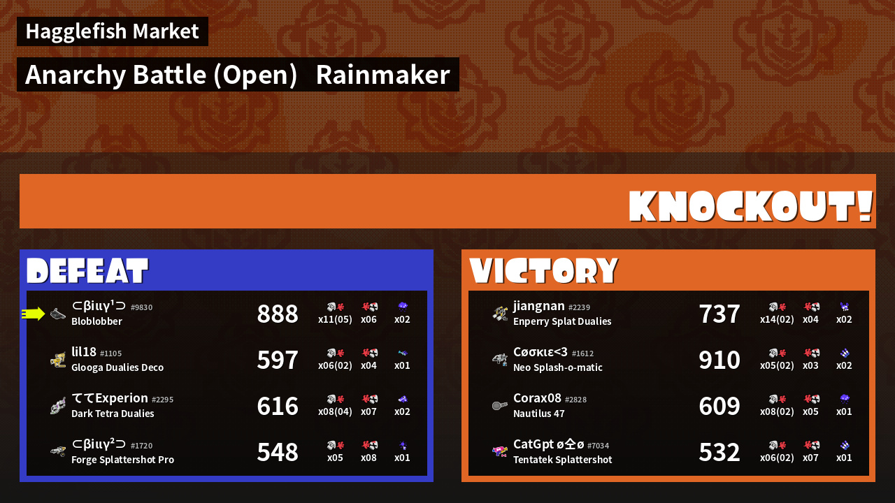 | Mode | Rainmaker - Anarchy Battle (Open) | ||