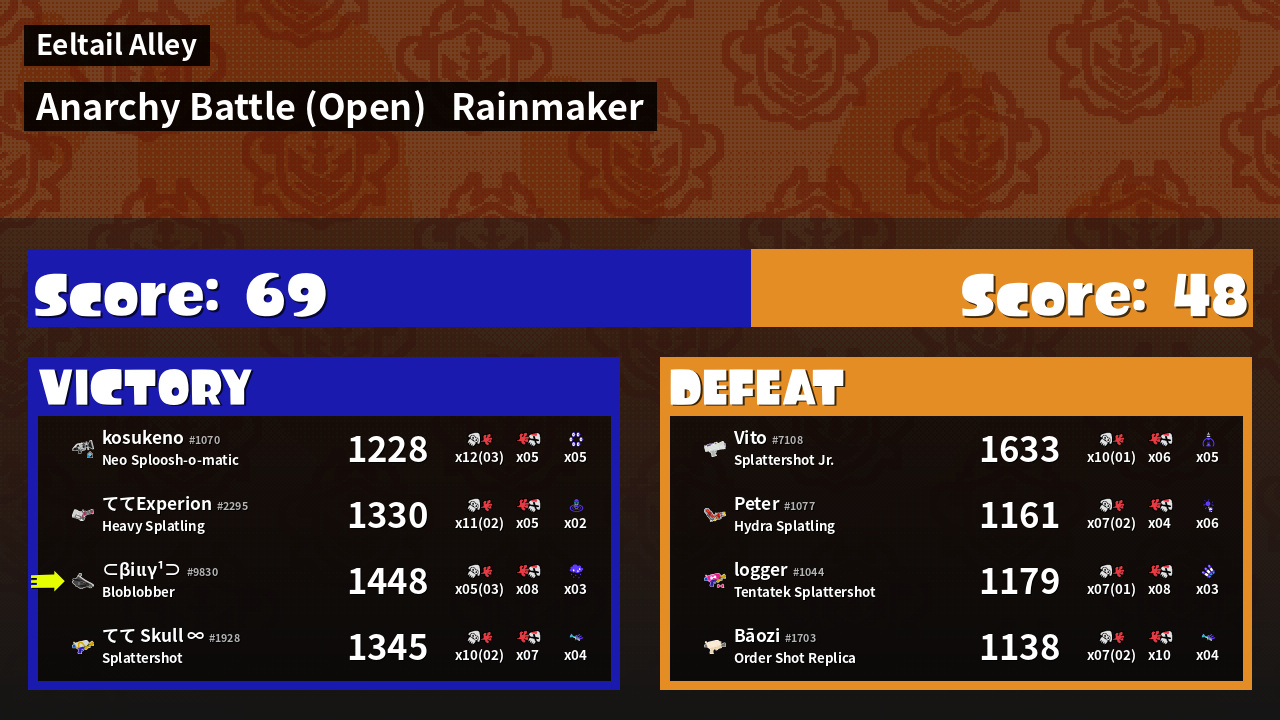 | Medals | #1 Turf Inker #1 Splat Assister #1 Rainmaker Stopper | ||