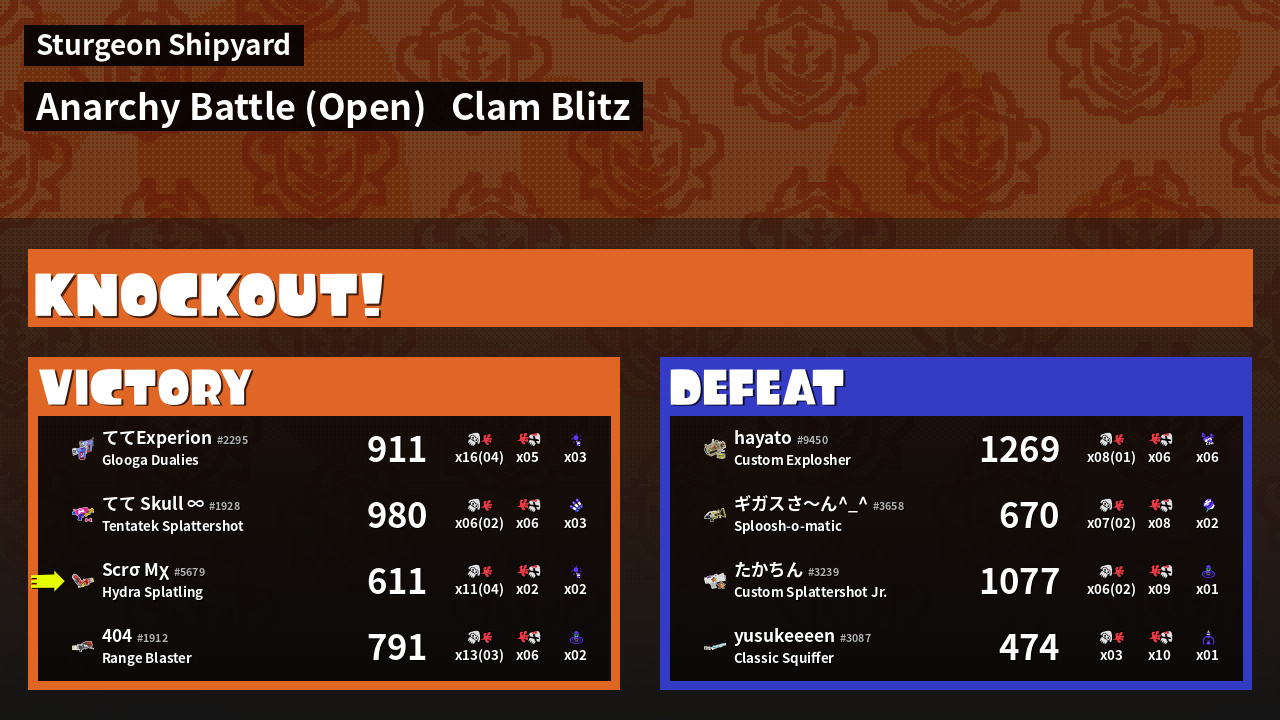 | Mode | Clam Blitz - Anarchy Battle (Open) |