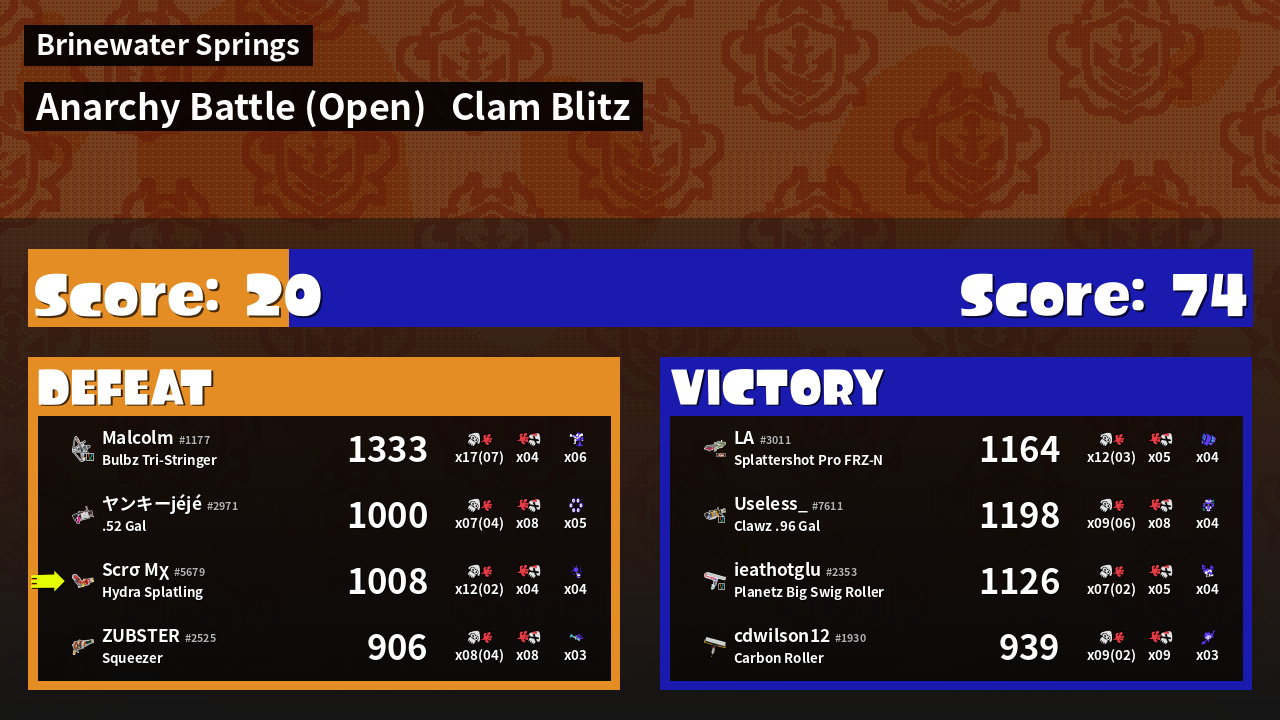 | Mode | Clam Blitz - Anarchy Battle (Open) |