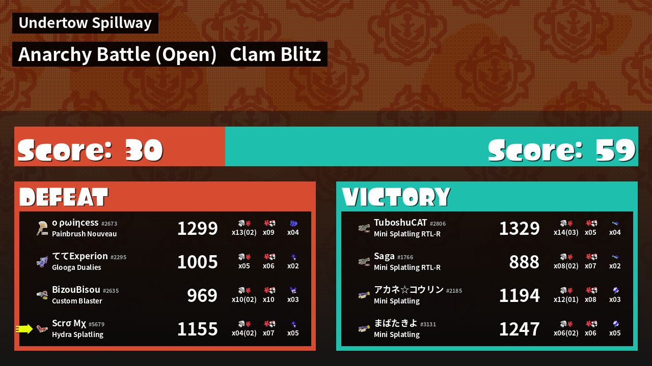 | Mode | Clam Blitz - Anarchy Battle (Open) |