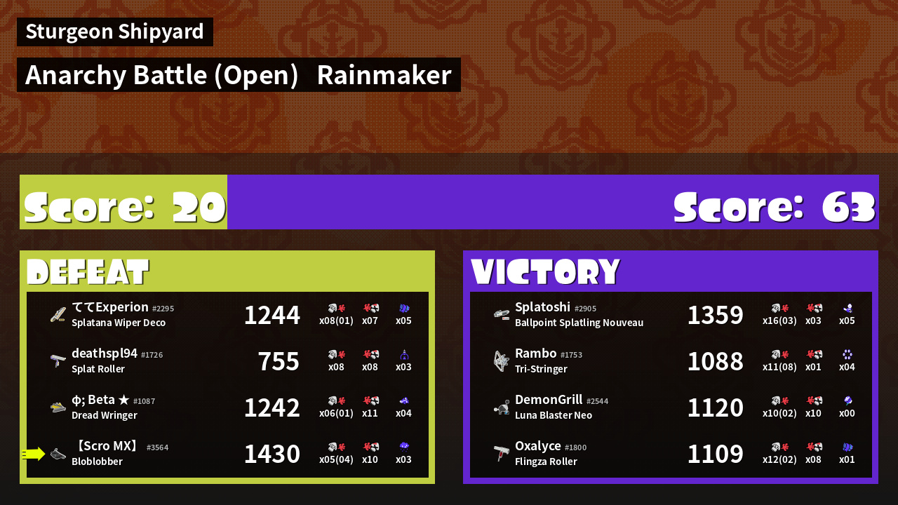 | Medals | #1 Turf Inker #1 Splat Assister #1 Ink Storm User | ||