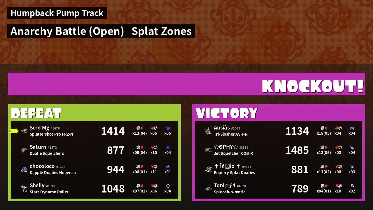 | Mode | Splat Zones - Anarchy Battle (Open) |