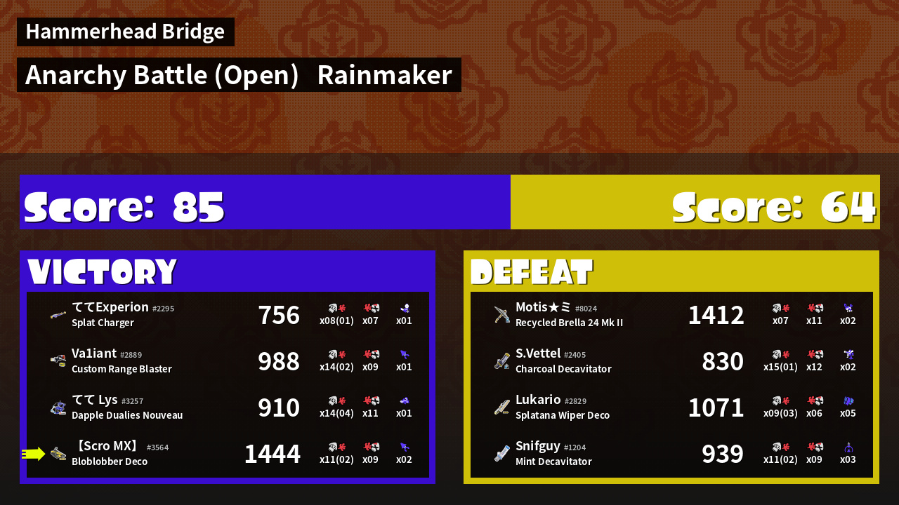 | Mode | Rainmaker - Anarchy Battle (Open) | ||