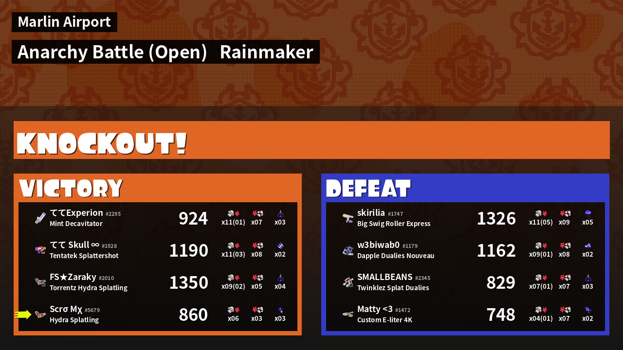 | Mode | Rainmaker - Anarchy Battle (Open) |