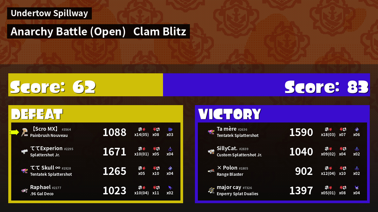 | Mode | Clam Blitz - Anarchy Battle (Open) | ||