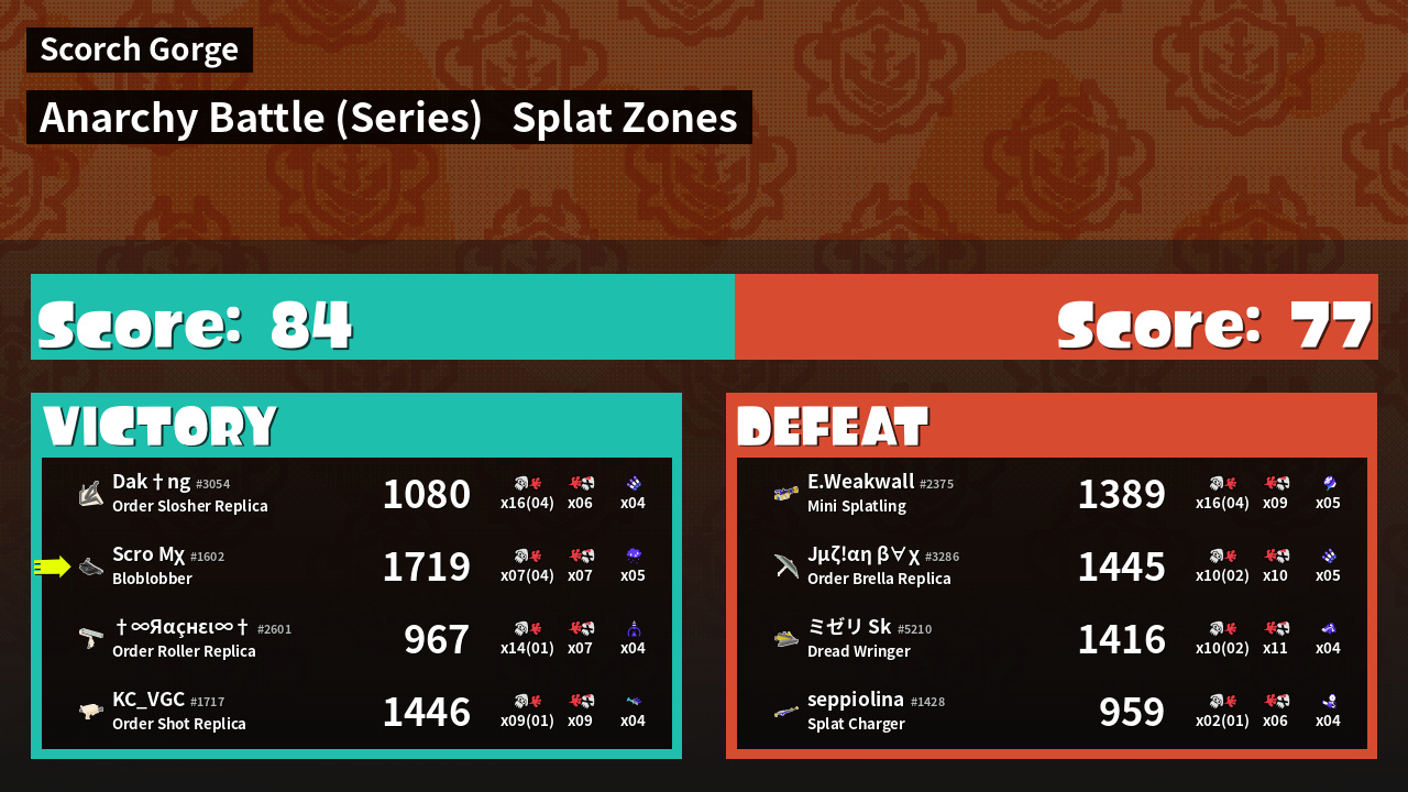 | Mode | Splat Zones - Anarchy Battle (Series) |