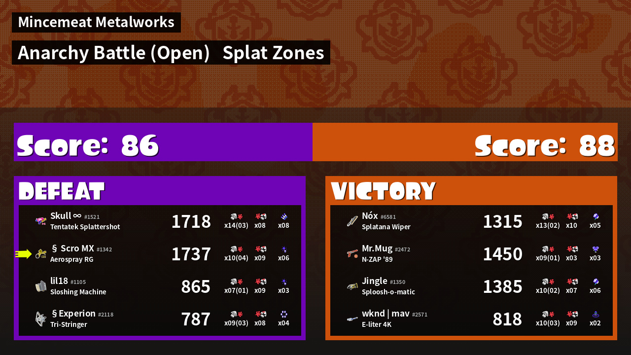| Mode | Splat Zones - Anarchy Battle (Open) | ||